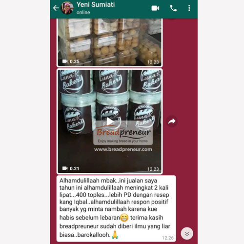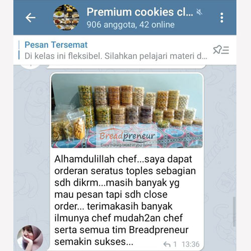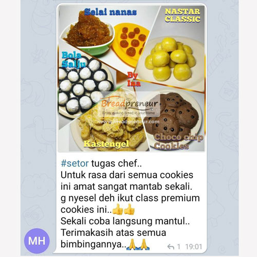 Cara belajar nya online dengan materi berupa modul resep dan video video lengkap. Semua materi tersebut bisa di simpan, di pelajari dan di praktekan kapan saja se bisa nya peserta (fleksibel). Jika ada kendala atau pertanyaan bisa langsung konsultasi dg tim chef breadpreneur
