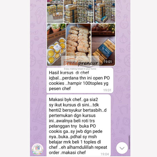 Chef iqbal adalah founder Breadpreneur Indonesia Yang kini sudah memiliki ribuan alumni di seluruh Kota di indonesia serta di Singapura, Kuala Lumpur, Taiwan, Hongkong dll.