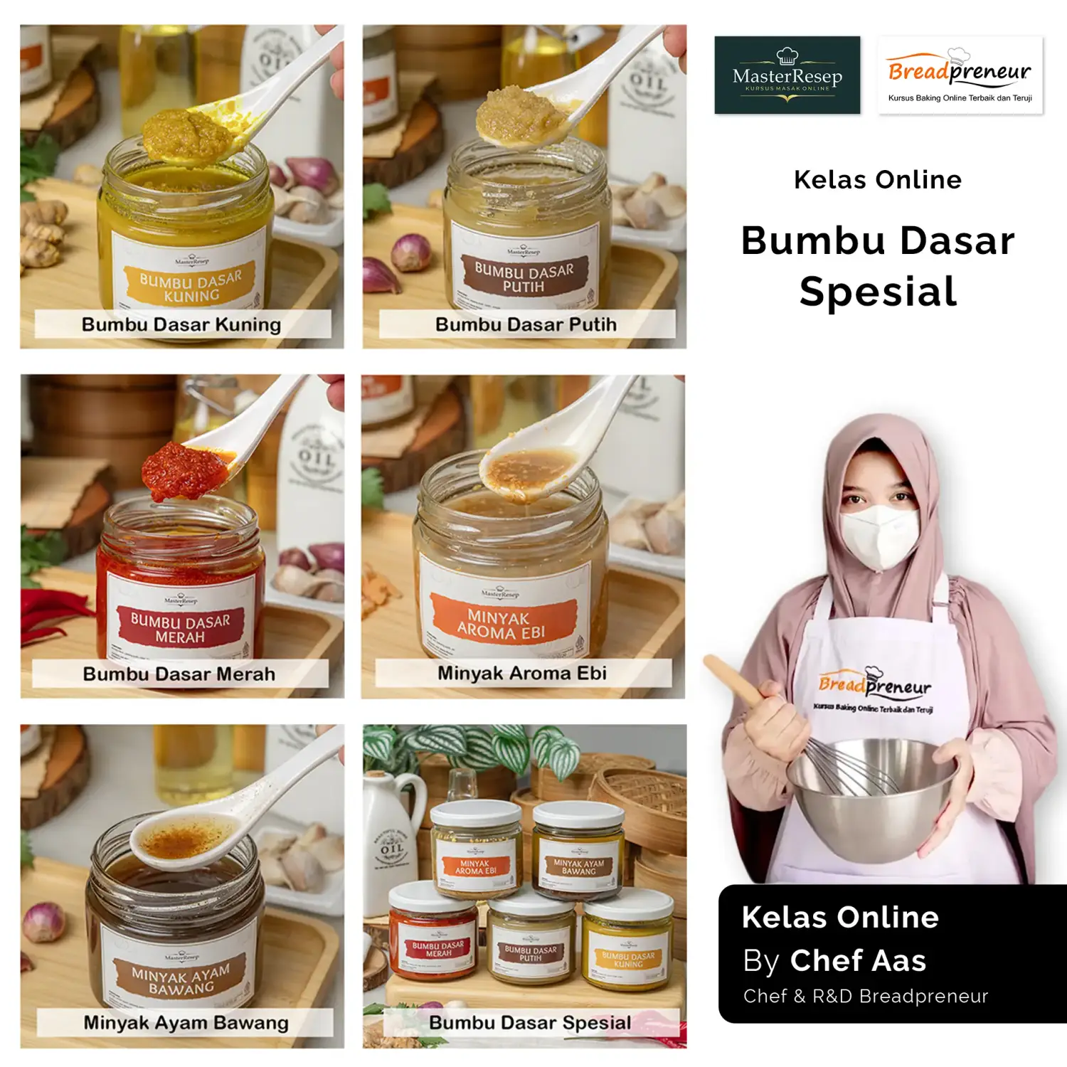 Chef Aas adalah seorang praktisi research and development (R&D) yang berpengalaman mengembangkan produk-produk terbaru dan terbaik di breadpreneur. Memahami ilmu bahan-bahan makanan terutama produk bakery, ilmu pangan, hingga proses pengolahannya.