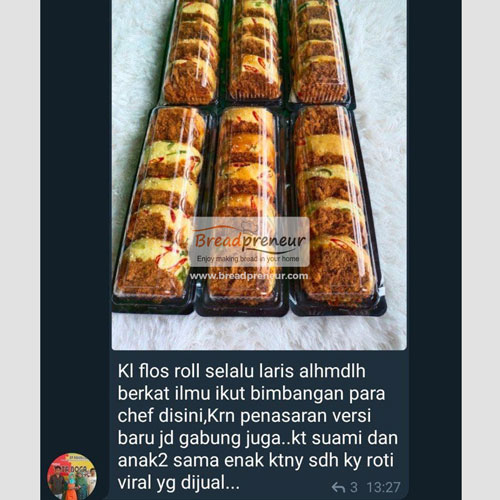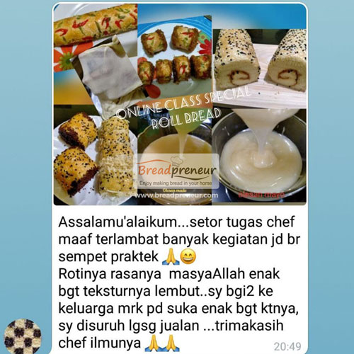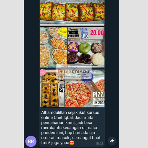Cara belajar nya online dengan materi berupa modul resep dan video video lengkap. Semua materi tersebut bisa di simpan, di pelajari dan di praktekan kapan saja se bisa nya peserta (fleksibel). Jika ada kendala atau pertanyaan bisa langsung konsultasi dg tim chef breadpreneur