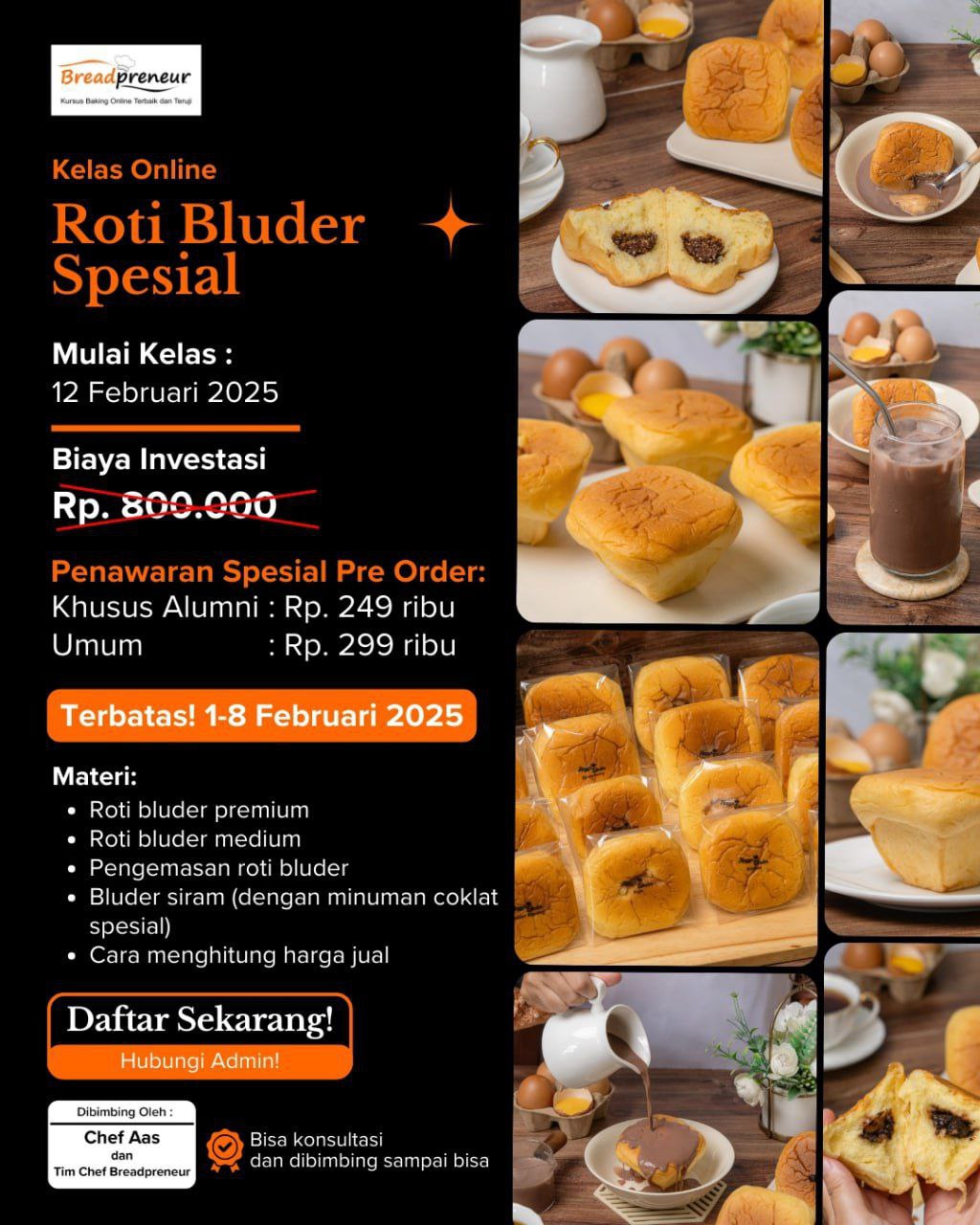 Tingkatkan penghasilan hingga jutaan rupiah dengan mengikut kelas online Breadpreneur. Bahkan sampai banjir orderan, hanya dengan alat sederhana hasil luar biasa.