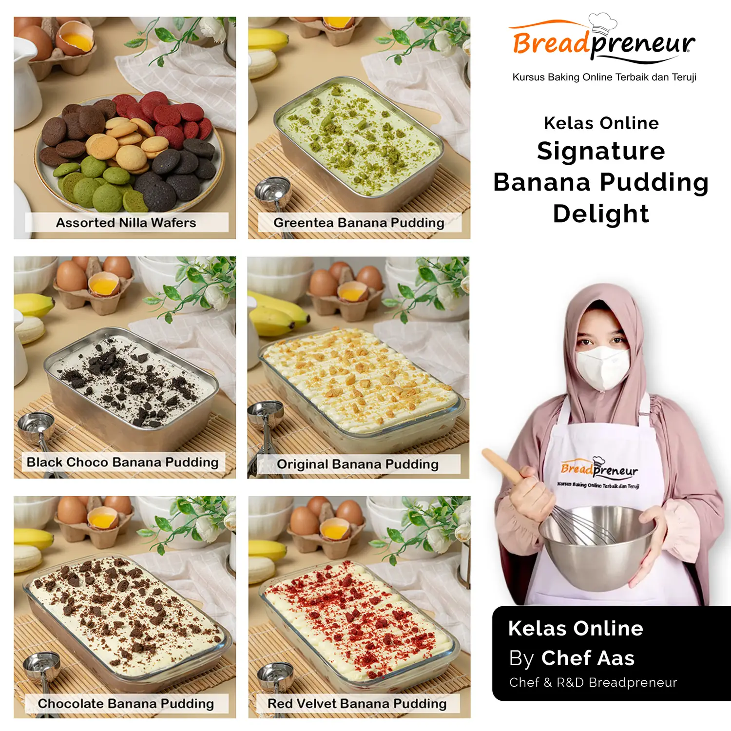 Chef Aas adalah seorang praktisi research and development (R&D) yang berpengalaman mengembangkan produk-produk terbaru dan terbaik di breadpreneur. Memahami ilmu bahan-bahan makanan terutama produk bakery, ilmu pangan, hingga proses pengolahannya.